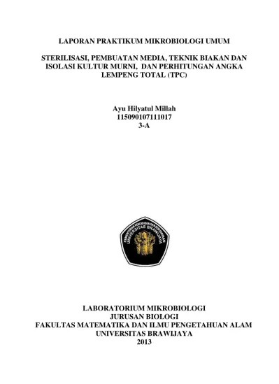 View laporan mikrobiologi pangan pembuatan dan penuangan media susulan.docx from thcs 6432 at sman 1 bangli. Sterilisasi alat dan pembuatan media na & pda. Laporan mikrobiologi sterilisasi dan pembuatan media. Kesehatan yang terampil dalam kompetensi mikrobiologi medis dan kesehatan. Mikrobiologi adalah suatu cabang ilmu biologi yang .